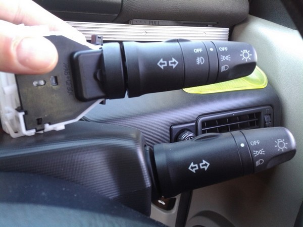 Недавно установил я ПТФ, а так как в моей комплектации они не предусмотрены, пришлось дополнительно колхозить кнопку включения отдельно на панели. Меня это не совсем устроило. Захотелось все сделать, как предусмотрено с завода. После недолгих поисков, нашел-таки родной подрулевой переключатель с ползунком включения ПТФ для правого руля.