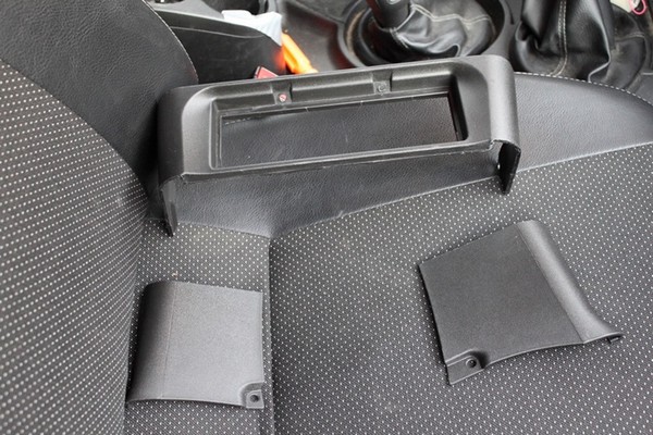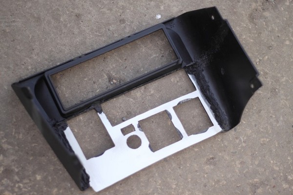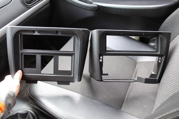 От дорестайловой отрезаем верх с ячейкой под магнитолу. т.к. тут магнитола стоит почти на сантиметр выше. А от рестайловой низ боковинок, т.к от дорестайла низ уже и не стыкуется с тоннелем.