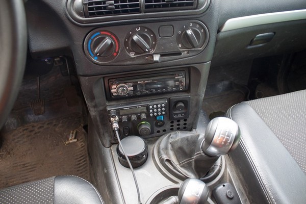 Позже просверлил отверстия для лучшей слышимости динамика рации. Выносной пока ставить не стал. На трассе иногда слышно слабо дальнобоев. Может позже вынесу динамик отдельный.