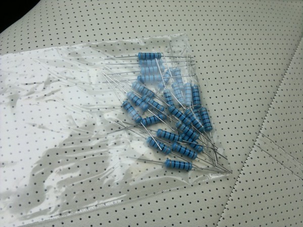 Я думаю многие знают, что при замене обычных ламп на светодиодные лампы поворота начинают быстро моргать, т.к. реле или компьютер "думает", что перегорела одна из ламп. На фокусе реле поворотов нет, поэтому его не доработать под светодиоды. Следующий способ восстановить равновесие — это повесить параллельно новой лампе дополнительное сопротивление. Сначала опытные товарищи подсказали что нужно сопротивление 15 ватт 15 Ом. Но ничего подобного я не нашел. Решил сделать из того, что есть в наличии. Купил много резисторов 2 Ватта 100 Ом