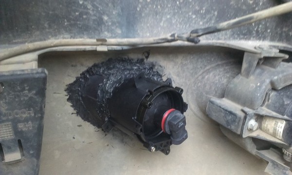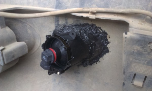 Отодвинув подкрылок, рукой дотягиваемся до лампы, выкручиваем ее, вынимаем, меняем на диоды