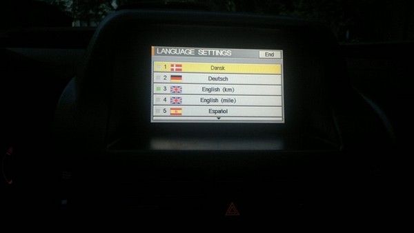 Ну и собственно все. Этот монитор имеет несколько больший функционал: все аварийные сигнализаторы дублируются на дисплее (джекичан, неисправность АБС, подушек безопасности, открытые двери при движении, низкая температура окружающего воздуха, перегрев двигателя), есть возможность выбирать режим движения с минимальным расходом топлива (шкала на фото), напоминалка по сервисным интервалам, несколько вариантов языков (русского конечно нет) возможность изменения цвета (голубой, оранжевый) при включенных и выключенных габаритах, а также самое главное — возможность подключения камеры заднего вида и организации видеовхода!