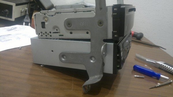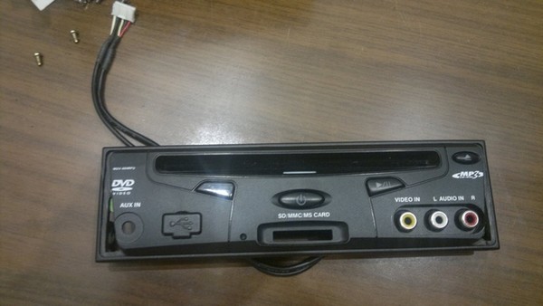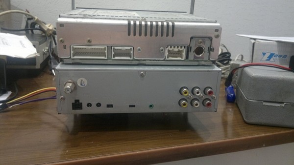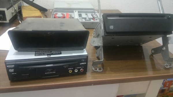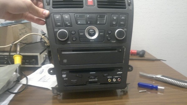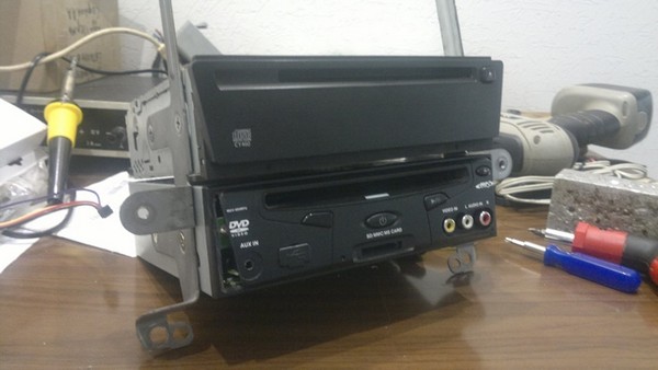 Про его функционал кто хочет может погуглить. В нём даже ТВ-тюнер есть. Конечно, особых требований к нему не было, лишь бы работал, это ж Мистери). Решил я использовать его как источник видеосигнала и установить на место карманчика под штатной магнитолой (где, кстати, стоит блок навигации в комплектациях с ней). Для этого снял с него лицевую панель и напильником тупо подогнал под форму окна в центральной консоли