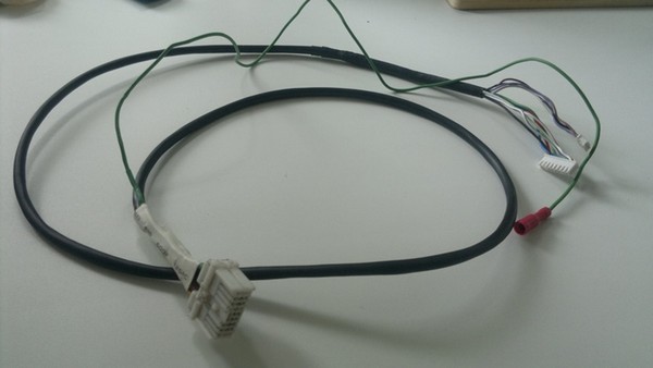"Папа" для разъёма в мониторе у меня, удивительным образом, подошел не знаю от чего (что-то ниссановское) и был собран вот такой кабель от монитора до транскодера