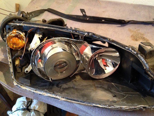 Вот так выглядела фара после первой переделки, мне понравилось