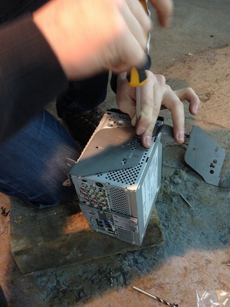 В стоковых пластинах высверливаем отверстия и прикручиваем в магнитоле.