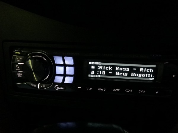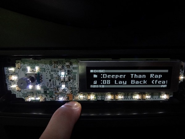 Каково же было мое удивление, когда при постановке появилась голубоватая подсветка. Также выяснилось, что при удержании около 10 сек кнопки AUX, собственно включается и выключается подсветка дисплея.