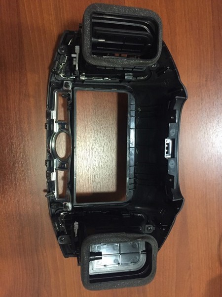1. Снимаем закрепленный на 6-х шурупах отсек для мелочи в верхней части новой магнитолы.