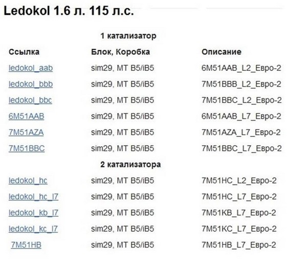 Как мы видим список сокращается в половину т.к. наша машина оборудована одним катализатором. Теперь нудно понять, как определить, что подойдет, а что нет. Для нашей машины подойдут все прошивки, которые начинаются на 7M51!