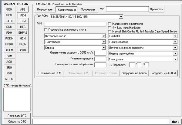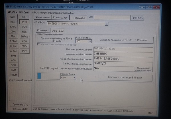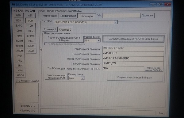 Приведенный ниже пример был выполнен на ford focus 2 Рестайлин 1.6 115 л.с. с базовой прошивкой 7M51-12A650-BBC тип модуля SIM29
