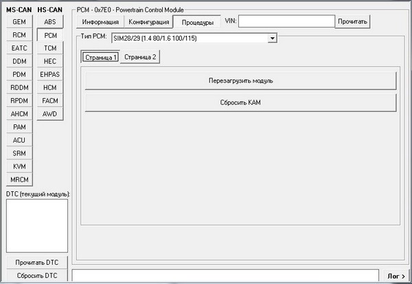 12. Запускаем программу ELMConfig переходим в раздел "PCM" далее во вкладку "Процедуры" далее "Страница 1" и нажимаем кнопку "Сбросить КАМ", это ускорит адаптацию новой прошивки.