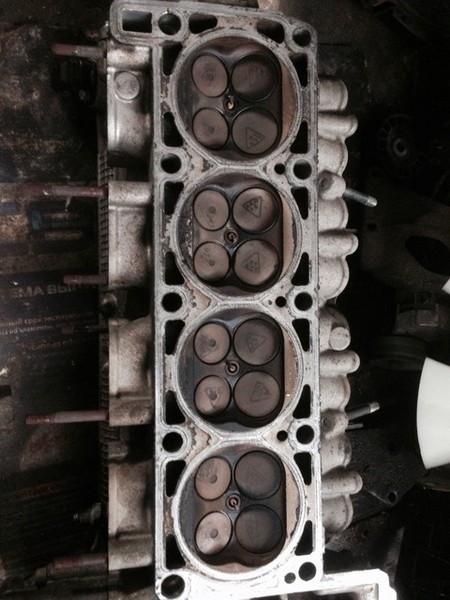 Опосля вскрытия мотора, выяснилось, что ГБЦ в далеко не хорошем состоянии, в следствие чего, ГБЦ чуток шлифанули, клапана притерли, восьмерошные пружинки вставили.