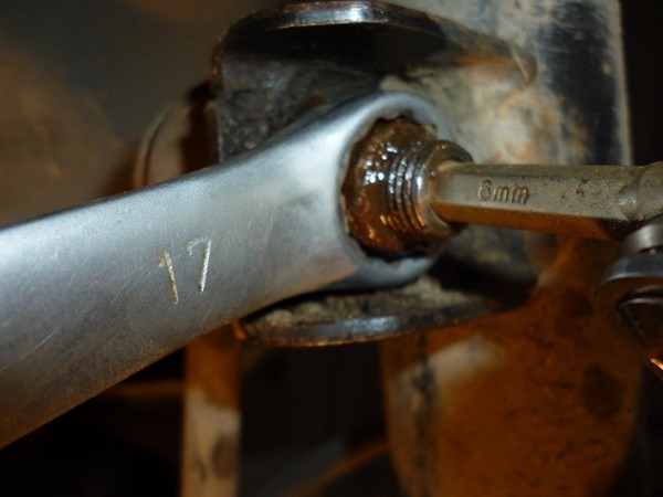 откручиваем две гайки, вот каким инструментом я это сделал, на помощь труба