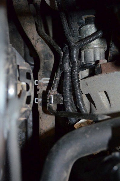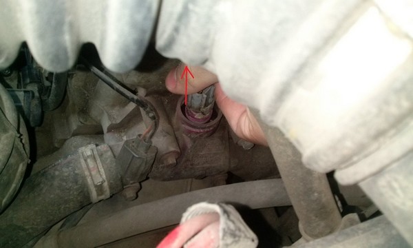 1. Нажав на фиксатор, отсоединяем колодку проводов(фишку)от датчика (3-е фото);