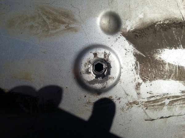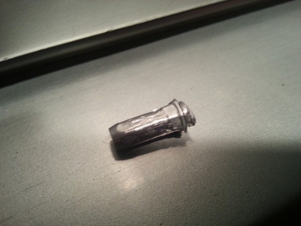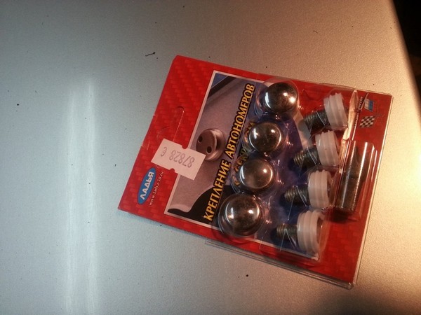 Заказал новую закладную гайку, новую подложку под номер, новые номерные рамки заехал взял у ОФФ. дилера, комплект болтов с секретками. На наждаке выточил из болта шпильку, чтобы можно было вставить в максимальное отверстие на клепачном пистолете.