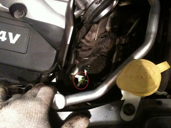 3. Снимаем воздуховод, освободив доступ к щупу, через который будем производить заливку. Щуп держится на болтике (ключ на 10).