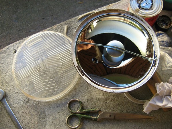 потом взял болгарку и старую фару и осторожна сделал вот такой надрез по кругу только прорезая металл