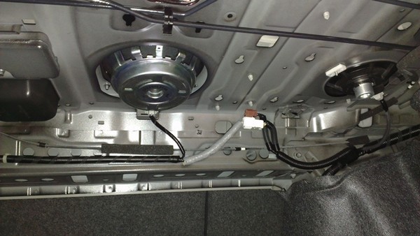 Третий элемент аудиосистемы в EXE-комплектации — усилитель мощности. Он установлен в багажнике с правой стороны за декоративной обшивкой.