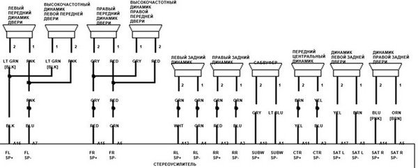 Цвета штатной проводки подключения акустики (Premium Audio System):