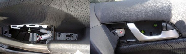 Поддеваем и снимаем блок управления стеклоподъемниками, откручиваем там же пару болтов, снимаем декоративную накладку сбоку ручки открывания двери, выкручиваем 3 самореза, сдергиваем дверную карту с двери и отсоединяем тяги механизма открывания. Дверная карта демонтирована: