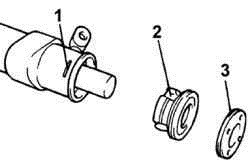 Рис. 4.27. Положение втулки (2) и стопора (3) рейки, расположение канавки (1) для стопорного кольца |