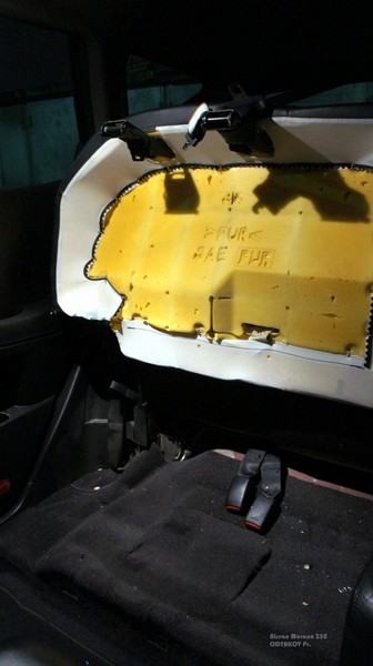 Снимаем заднее сидение. Топливная станция находится с левой стороны машины.