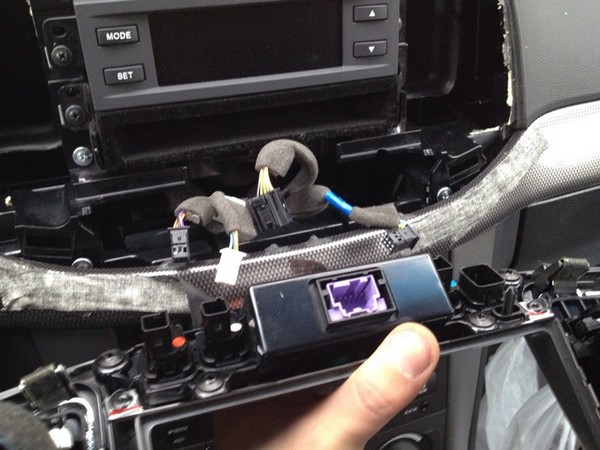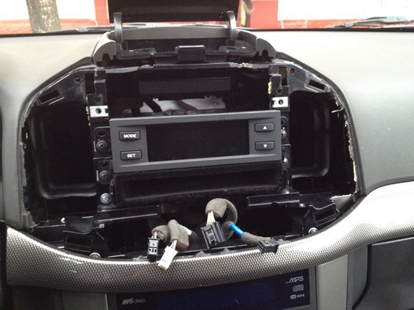 Дальше прокидываю дополнительные провода через отверстия для охлаждения перчаточного ящика и вставляю магнитолу и экран в свои места.
