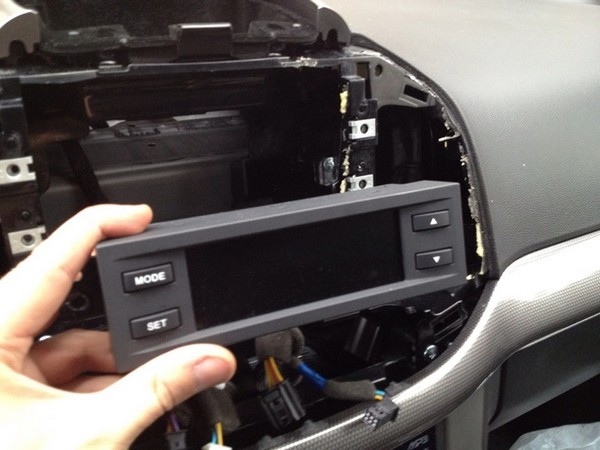 После того, как рамка ушла на заднее сидение, приступаю к демонтажу бортового компьютера и полочки для мелочи под ним