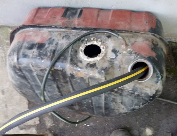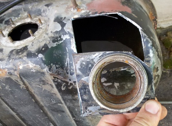 Сняв бак с автомобиля, залил его полностью водой, вырезал болгаркой серцавину с бака и в варил эту трубку из внутри