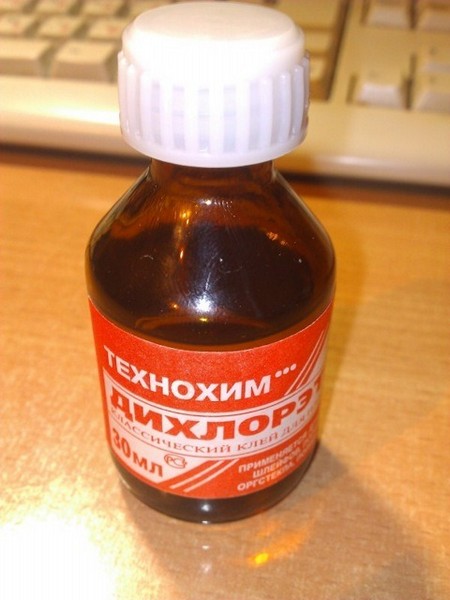 Пришло время показать, как работает дихлорэтан. Нужно всего по капле капать и растирать по стенкам в каждое сверление, эффект на лицо и даже на снимке отчетливо видно.