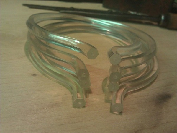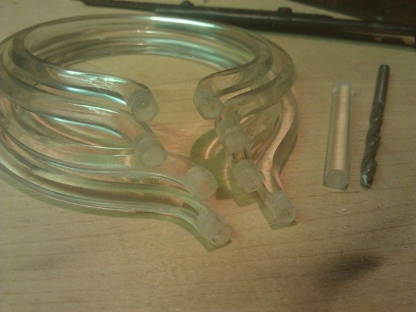 А вот на службе в части было случайно найдено именно то, что нужно! Поломанный пруток шестигранной формы из оргстекла от старых горизонтальных жалюзи, какого было мое удивление и радость при такой находке! Вот так у меня и появились самые основные материалы для продолжения экспериментов. Только в этот раз все уже должно было быть на порядок серьезнее, совсем другой уровень, другое качество и ответственность… Конечно, позже через пару недель я умудрился найти еще одну половину этого прутка, но на момент изготовления у меня его было как раз на комплект глазок и права на ошибку не было. Забегая вперед скажу: все прошло как по маслу.