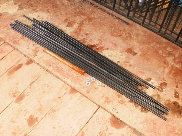 варил все инвертером электродами 1,6. но потом попробовал варить полуавтоматом — вот это халява). сетку прихватываем с двух сторон в каждом пересечении с профилем. два профиля с креплениями используем 30х15. болты не привариваем, а засверливаем профиль и снизу вставляем болты + крепежные пластины, сверху схватываем гайки — так проще и в изготовлении и в дальнейшей установке, чем точно приваривать болты снизу.