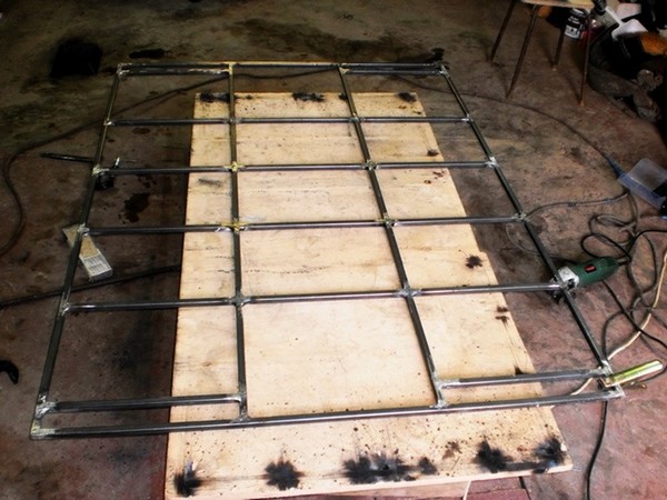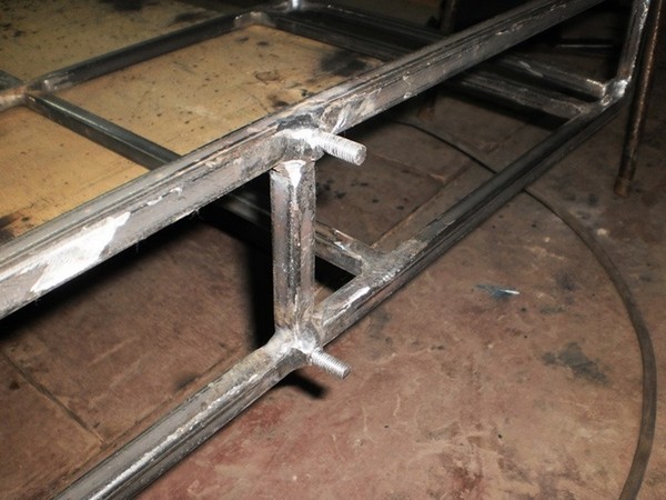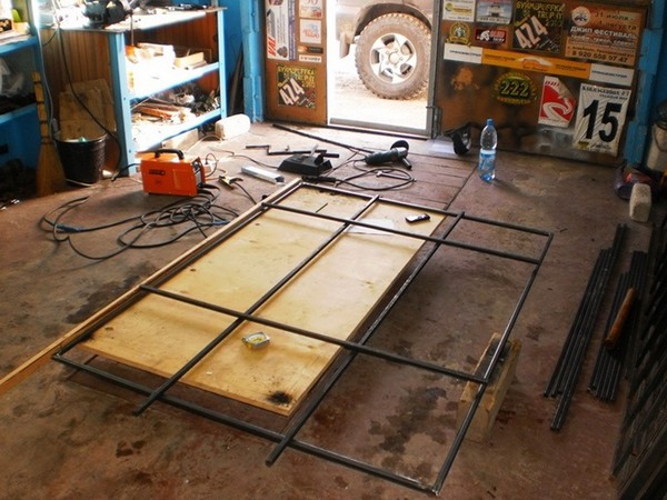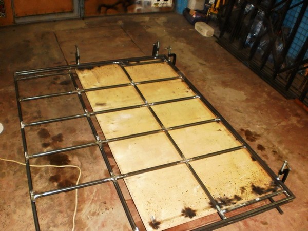 Соответственно сваяв из небытия периметр, заполняем его по заранее определенному чертежу поперечины и продолины. Получаем нижнюю часть багажника: