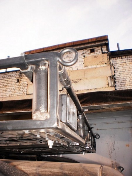Далее, на готовый низ+стойки+верх навариваем крепеж лопаты. Лопата, как известно — инструмент №1 на внедорожье.