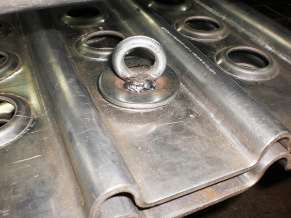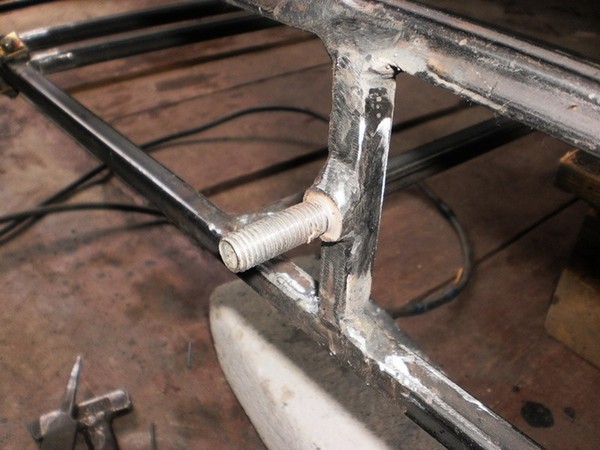 Привариваем четыре петли из рым-гаек для веткоотбойников и крепежа лагерных резинок