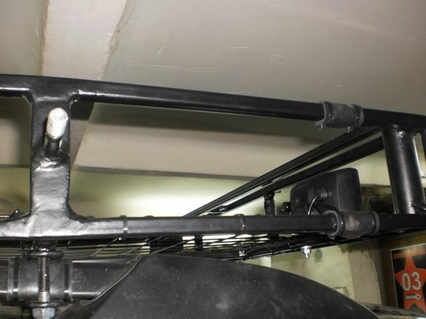 все места прилегания железок к багажнику обезопасим резинками на хомутах: