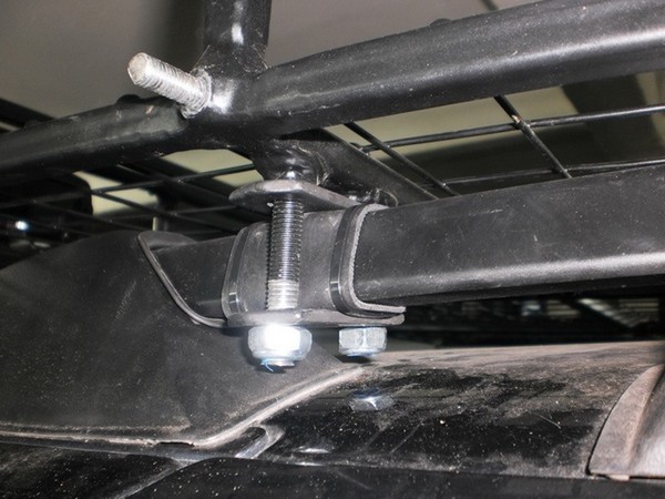 Для крепления используем приваренные к поперечинам болты, надетые на них упорные пластины, гайки и резинки с хомутами, в качестве предохранителя и демпфера: