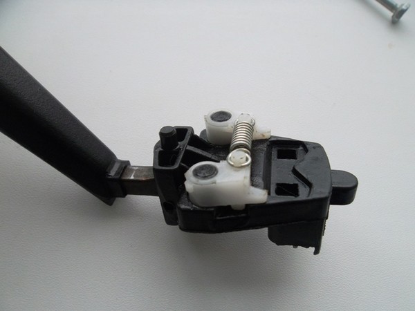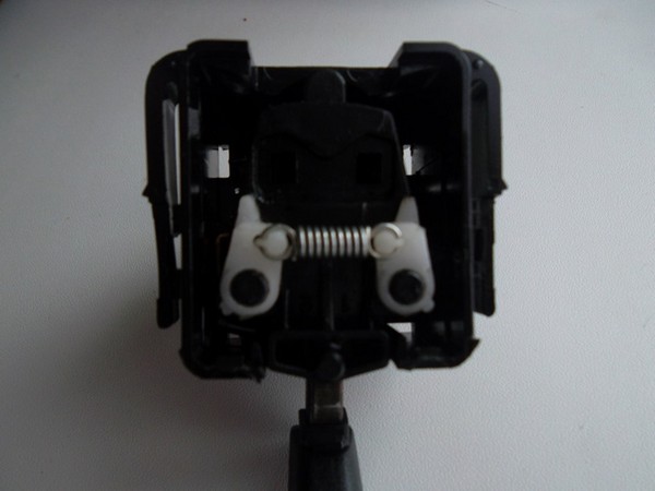 далее снимая крышку, с тем усиком что и отодвигает в обратное положение нашу щетку, ус крепиться н маленькой пружинки потому не теряем его.