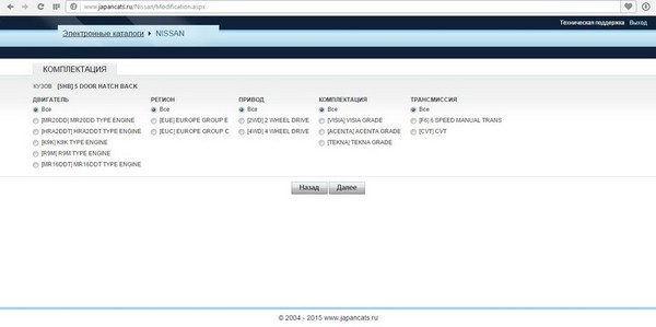 Открывается общий раздел все комплектаций Qashqai — выбираем свое