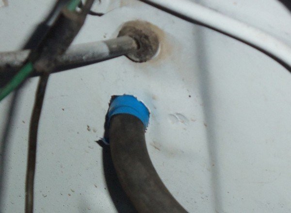 Дальше была морока - где сделать отверстие, чтобы в дальнейшем не мешалась оно. Оптимальным местом оказалось под тросиком подсоса место - самое то.