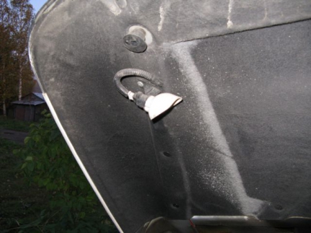 Установку лампочки лучше всего производить в левой части капота, потому что там больше свободного места и лампочка не будет ни за что задевать после захлопывания. Если есть шумоизоляция капота, то проводку освещения лучше всего провести именно под ней. Далее устанавливаем кнопку включения подсветки. Если кнопки нет, то провода можно напрямую накидывать на аккумуляторную батарею и подсоединять ее по мере необходимости. Плюс подключается с АКБ через предохранитель на 5 ампер, а минус берется с концевика капота, чтобы лампа гасла после закрытия капота, даже если вы забыли выключить кнопку.