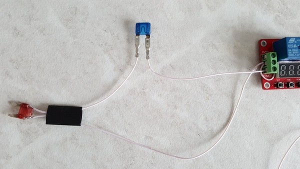 Дома собрал быстро плату. Принцип простой, на плату надо подать + и -, и один провод пустить в разрыв на предохранитель, а вместо штатного предохранителя вставить пустой предохранитель не рабочий, с припаянными проводами. Все провода припаяны, без скруток. В термоусадках.