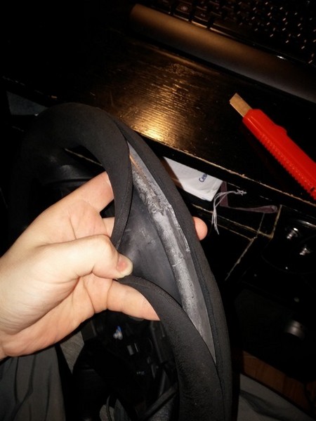 Первым делом, я его помыл хорошенько и стал проклеивать, так как эта обшивка руля прокручивалась во круг обода.
