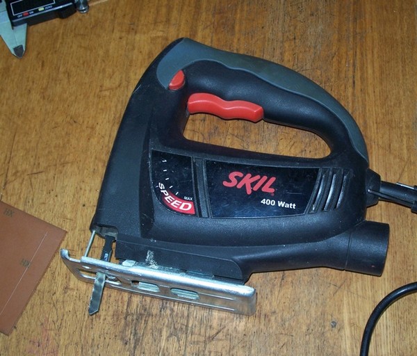 За основу взял текстолит. Штангенциркулем измеряем отверстие в модуле. Размер переносим на текстолит, берём электролобзик и выпиливаем.