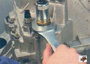 54. При необходимости снимите датчик скорости и выверните из картера коробки передач выключатель света заднего хода.