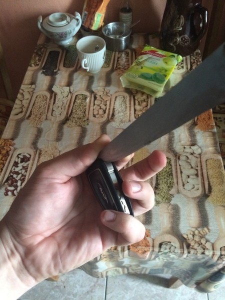 2. Берем нож и вставляя между жалом и корпусом оттягиваем корпус чтобы увидеть пружину и убрать оттуда обломанный кусочек металла.
