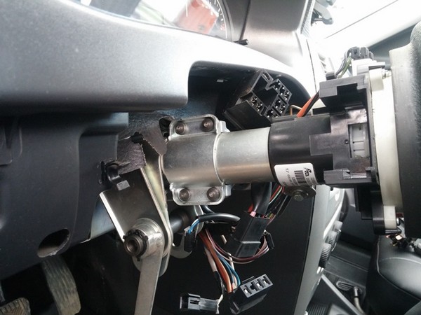 Первым делом, снимаем кожух. Видим четыре болта крепления замка зажигания.