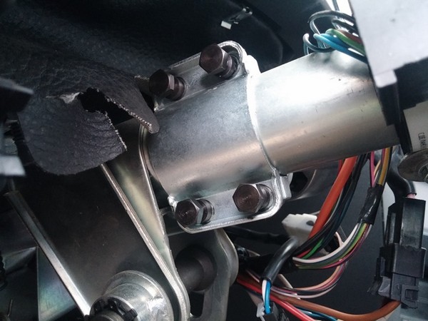 Так как стоят болты с отрывными головками, то чтобы снять замок их нужно высверлить или отпустить с помощью маленького зубила. Я воспользовался вторым вариантом. Для удобства снимаем подрулевой переключатель.
