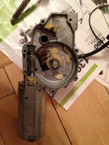 Слава Форд Мотор Компани за то, что моторчики полностью унифицированы. Вся сборка состояла только в том, что я вставил в новый моторчик ось от старого, все это дело хорошо сдобрил смазкой МС-1000 и поставил крышку от старого моторчика (она подходит).