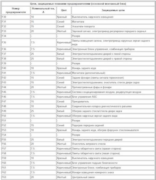 Предохранители основного монтажного блока (в салоне авто)
